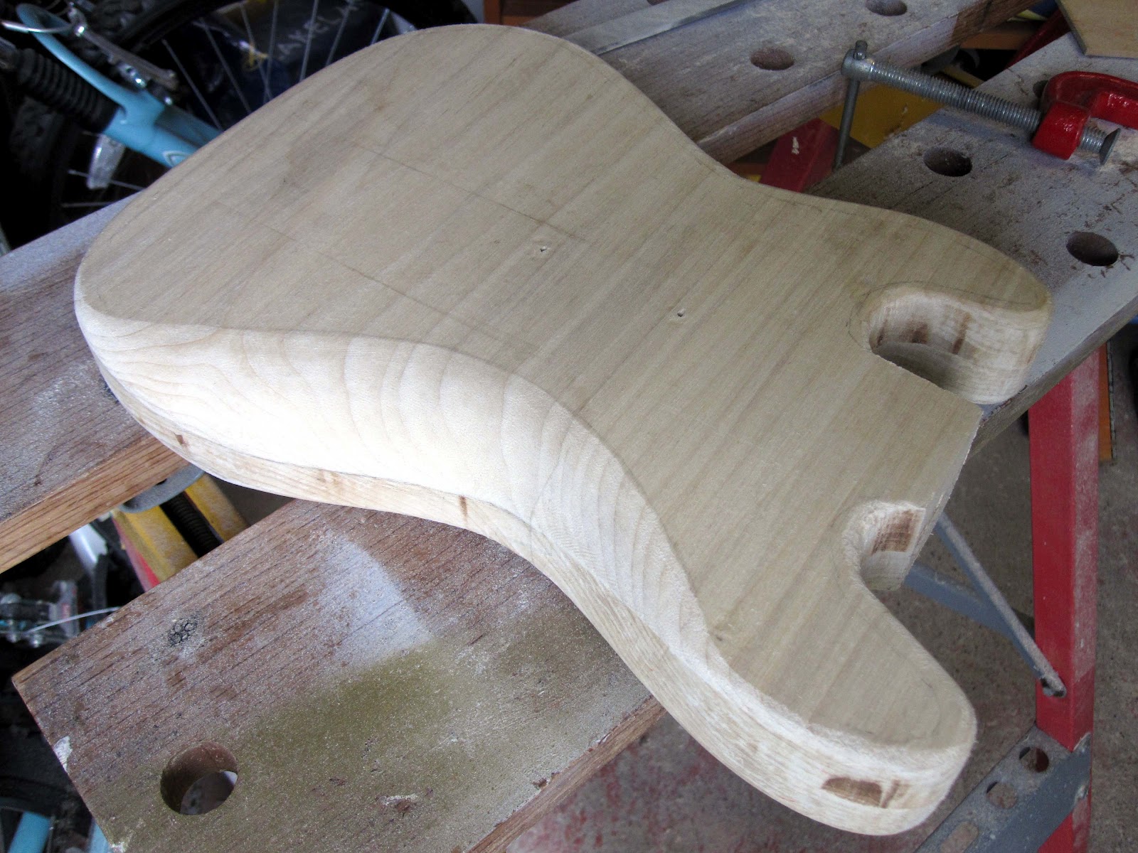 | Here’s the filed body. Check out all the little dinks and burn marks from poor routing. I’ve since filled the holes. |