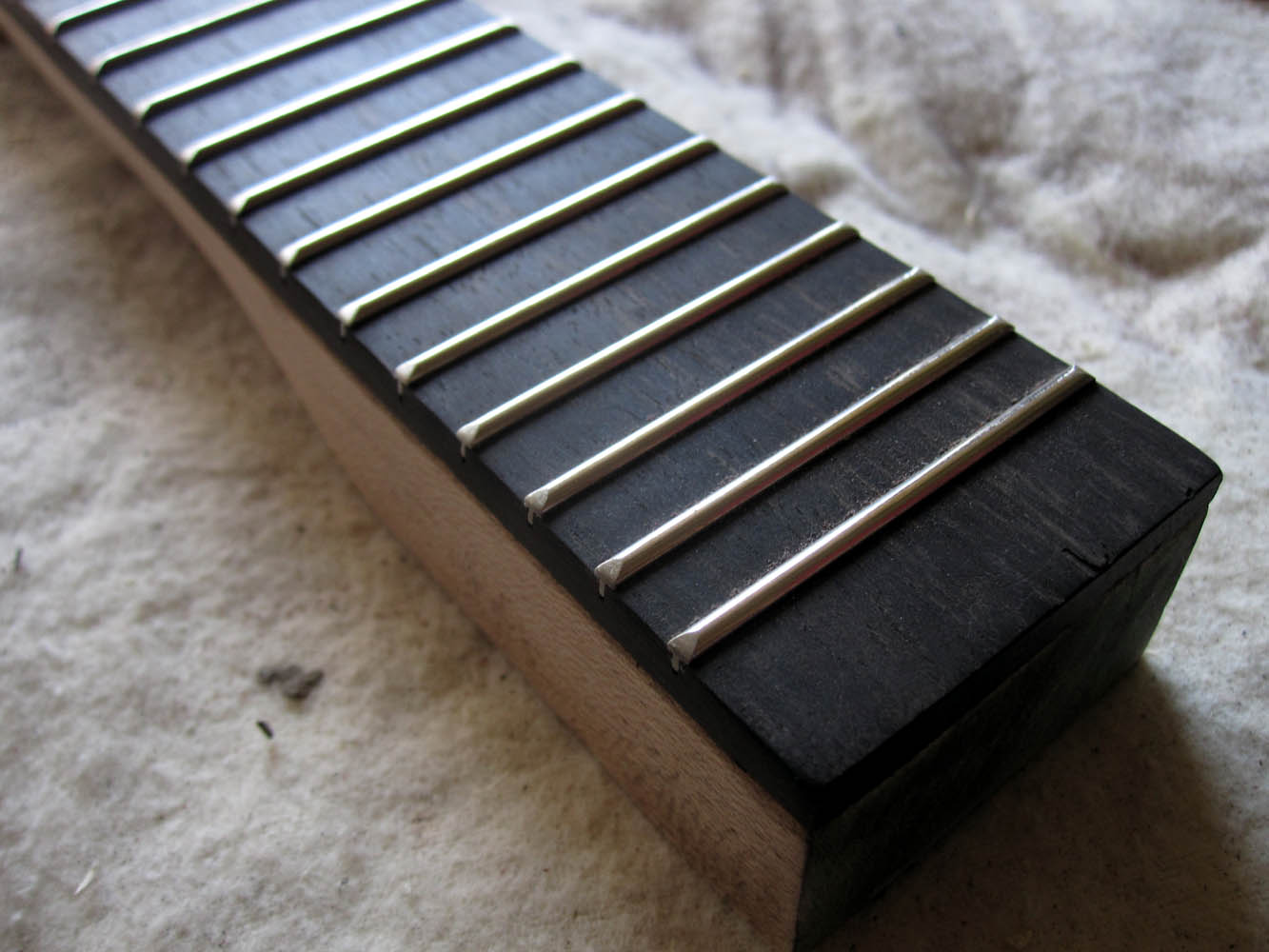 Next I banged the frets into place. This wasn’t always as straightforward as you might