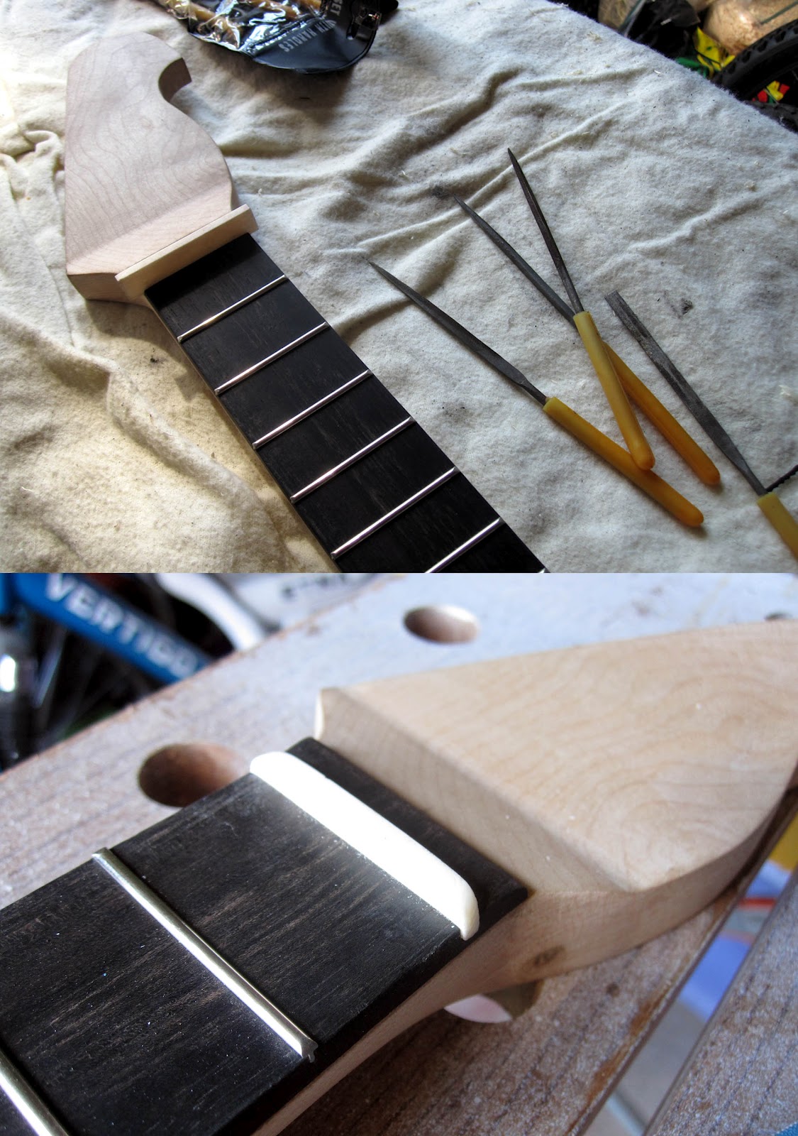 Gripped with a new braveness and enthusiasm I cut the slot for the nut and