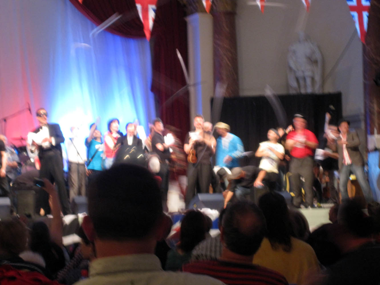 | Chonkinfeckle traveled down from Lancashire to deliver some Northern humour. They were really let down by a terrible sound. Even with some mid-tune fettling, the engineers weren’t able to fix it. About the only thing I could make out was that one of the songs might have been called “Leccy-mon”. Did I get that right? And you thought the only good thing to come out of Wigan was casinos! |