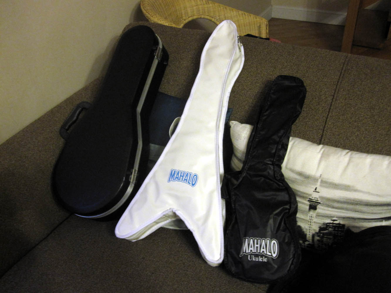 | Packed and ready in the King Uke household! We had the only “V” at the whole festival, and come to mention it, the only smiley uke too! Surprisingly (for me at least) there was very little banjo-uke representation and no (proper) electric ukes AT ALL! If I’d been a bit further on with my build I would have taken mine along. I bet the Re-Entrants would have liked a look… |